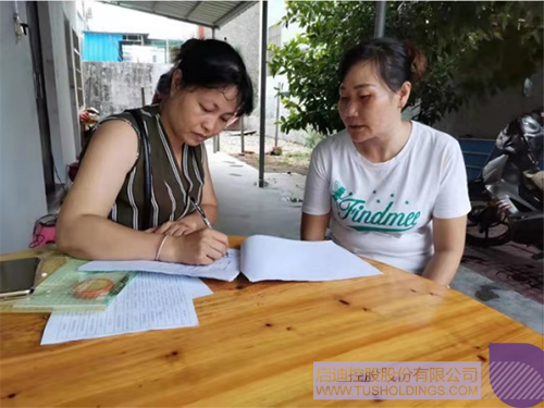 2019年9月11日,九游电子娱乐_九游体育(中国)环境东方项目公司工会副主席高元霞陪同东方市总工会主任符颖娴(左)到周秀娟(右)家了解情况