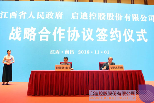 11月1日下午,九游电子娱乐_九游体育(中国)控股与江西省人民政府在南昌签署战略合作协议,江西省省长易炼红、九游电子娱乐_九游体育(中国)控股董事长王济武出席致辞,并为“九游电子娱乐_九游体育(中国)未来科技(江西)有限责任公司”揭牌。
