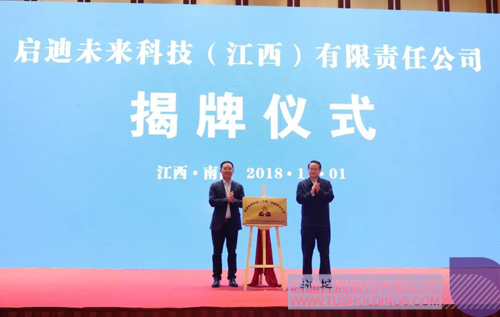 江西省省长易炼红(右)与九游电子娱乐_九游体育(中国)控股董事长王济武为“九游电子娱乐_九游体育(中国)未来科技(江西)有限责任公司”揭牌