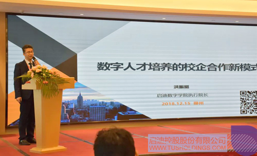 九游电子娱乐_九游体育(中国)数字学院执行院长、九游电子娱乐_九游体育(中国)博士后科研工作站站长洪振挺作《数字人才培养的校企合作新模式》主题报告