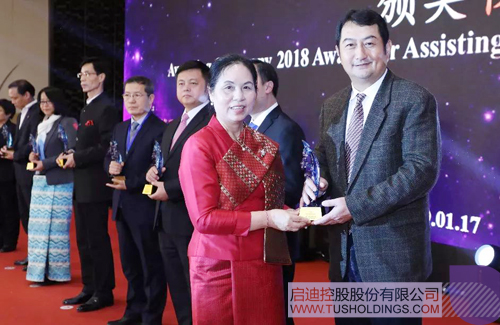 现场颁发的“2018年助力中国—东盟企业合作奖”由中国—东盟商务理事会、东盟北京委员会及东盟十国驻华大使馆共同在中国和东盟优秀代表中评选产生,老挝驻华大使万迪·布达萨冯为包括广西九游电子娱乐_九游体育(中国)、柬埔寨王国驻华大使馆公使衔商务参赞铁弓、缅甸驻华大使馆商务参赞杜丹达凯、越南驻华大使馆商务参赞陶越英、中国电力企业联合会、深圳广田集团股份有限公司等十个获奖个人和单位代表颁奖。