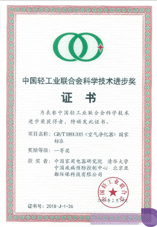 亚都作为国产空净品牌的佼佼者,能够成为获得此项奖励的唯一企业单位,乃是实至名归,也充分证明亚都在空净行业中所处的领先地位和突出贡献。新国标制定之前,国际权威性的空气净化器标准是美国标准,因其最科学、最严格、最通用而被中国一直借鉴及延用。但是人们会反思,为什么作为空净产品消费大国,中国怎么没有自己的空净标准?