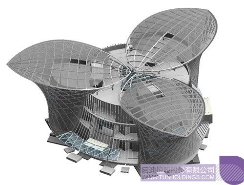 1、设计体型的复杂化以致于设计一开始就采用BIM参数化手段全过程设计,由于体型复杂,建筑、结构、幕墙三个专业的定位、构架、分割需相互契合,设计的过程中,由上述三专业人员在同一个BIM模型中协同工作。