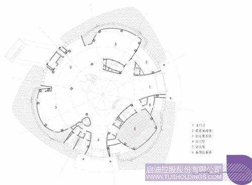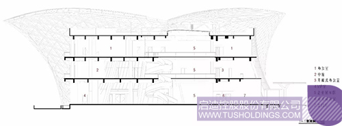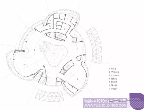 2、建筑内部空间围绕核心中庭予以布置