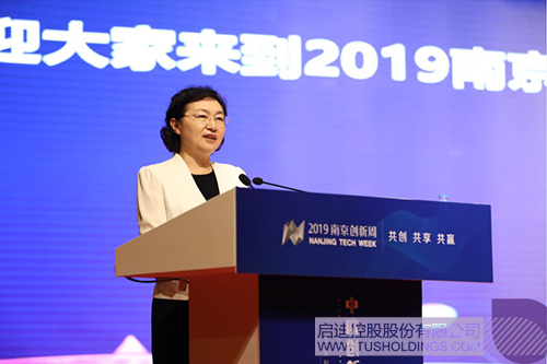 陈华在致辞中指出2019年是创新名城的深化拓展之年,南京聚焦科技创新工作,在市场化、高端化、国际化、融合化、集群化、法制化方面探索新的机制,希望通过创新周搭建平台,借此论坛机会,集聚全球创新资源,推动成果在南京落地生根。