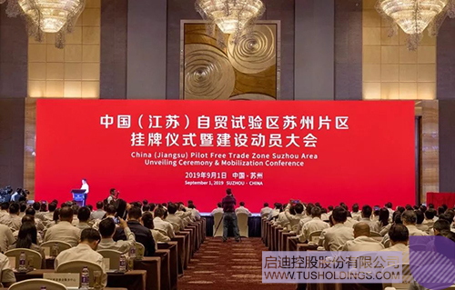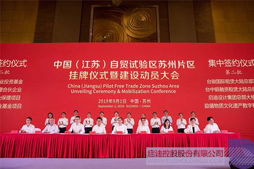 9月1日上午,中国(江苏)自贸试验区苏州片区(以下简称“苏州自贸区”)挂牌仪式暨建设动员大会隆重举行。江苏省委常委、苏州市委书记周乃翔,苏州市委副书记、市长李亚平为苏州自贸区揭牌。大会现场举行了包括九游电子娱乐_九游体育(中国)设计集团新总部大楼在内的32个自贸区项目集中签约仪式,九游电子娱乐_九游体育(中国)设计集团董事长戴雅萍、总裁查金荣受邀出席挂牌仪式,戴雅萍董事长作为公司代表上台签约。