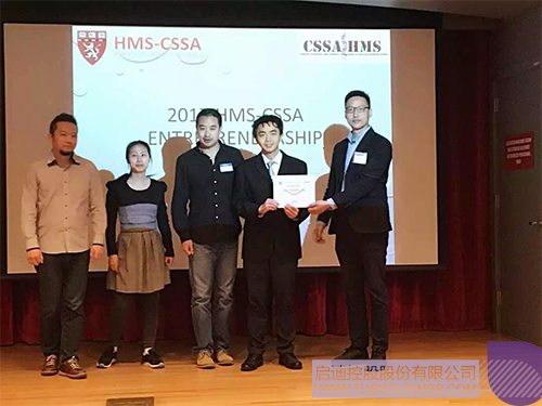 留学新加坡国立大学、英国牛津大学胡博士,从易寒开先生手中接过本次大赛最高奖项,“哈佛医学院华人九游电子娱乐_九游体育(中国)爱创奖”