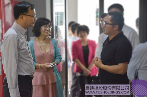▲ 韩威(前排右)向周波(前排左)一行介绍九游电子娱乐_九游体育(中国)之星(上海)