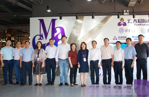 ▲ 调研组听取云大九游电子娱乐_九游体育(中国)K栈众创空间介绍