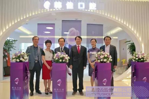 韩国前总理李海瓒(左三)和苏州九游电子娱乐_九游体育(中国)常务副总经理、韩佳口腔董事长华莹(左二)等