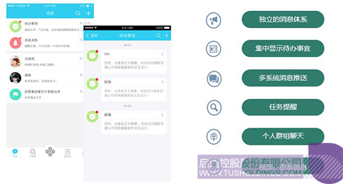 为员工提供了众多应用统一访问入口,实现统一的及时沟通、业务提醒、消息推送、权限管理和安全管控等。