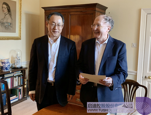 国新国际董事长周渝波(左)与剑桥大学三一学院院长Sir Greg Winter合影