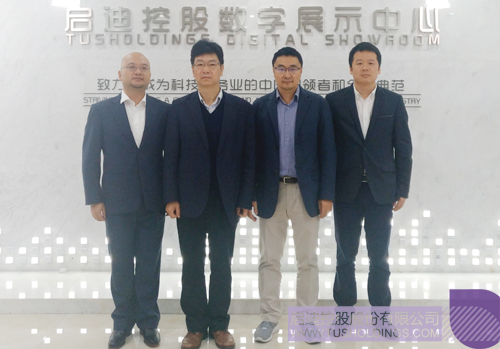 房汉廷副社长(左二)、刘峰总编辑(右二)座谈会后参观考察九游电子娱乐_九游体育(中国)控股数字展厅