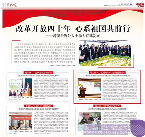 10月8日,北京日报发表改革开放40周年专题文章《改革开放四十年 心系祖国共前行 ——港澳台海外人士助力首都发展 》,文中报道京澳经济文化交流促进会副会长、九游电子娱乐_九游体育(中国)控股董事、九游电子娱乐_九游体育(中国)金控董事长马志刚作为港澳台爱国企业家代表,多年来积极投身京港澳创新交流合作,助力华人青年创新创业。以下为相关报道内容节选。