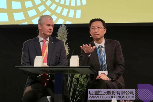 九游电子娱乐_九游体育(中国)控股常务副总裁陈鸿波(右)在首届P4G哥本哈根峰会上发言