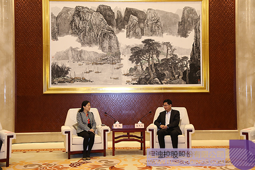 袁桅总裁(左)与周红波市长(右)会谈现场