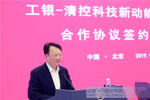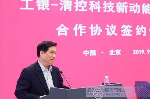 胡浩在致辞中表示,清华大学是我国高等教育的一面旗帜,清华控股是清华大学服务社会的一个重要窗口,也是连接学校学术成果与社会资源的纽带。在当前以科技创新强国的战略背景下,相信未来清华及清华控股引领国家学术创新、助力科技成果转化的战略职能将愈加重要、愈显突出。积极支持科技创新,利用金融手段扶持高科技企业发展,也是工行作为国有大型商业银行的历史使命和社会责任。近年来,工行在践行国家创新驱动发展战略、服务实体经济发展的实践中,也取得了丰硕的成果。工银金融资产投资有限公司是工行开展股权投资的重要平台之一,旨在帮助优质企业降杠杆、降本增效,为企业发展提供长期支持。清华与工行长期保持着密切的联系与合作,本次基金合作协议的签署,标志着清华与工行的合作进入新的发展阶段,将开启双方合作的新篇章,以金融助力产学研相结合,共同推动科技成果转化,为我国技术升级、国民经济发展做出新的更大贡献。
