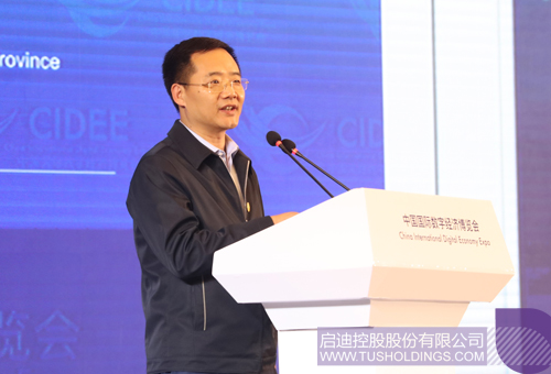 王济武董事长应邀出席2019中国国际数字经济博览会开幕式,并在当天下午举办的智能雄安高峰论坛上发表主旨演讲,为雄安新区智能城市创新联合会揭牌。