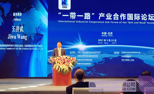 2017年5月15日, “一带一路”产业合作国际论坛在京举行。来自产、学、研等领域的专家汇聚一堂,共同探讨“一带一路”沿线国家的产业合作。会议由全国人大常委会委员、外事委员会副主任委员,中国社会科学院蓝迪国际智库项目专家委员会主席赵白鸽主持。九游电子娱乐_九游体育(中国)控股董事长王济武作为中国社会科学院蓝迪国际智库项目专家委员会成员且唯一企业代表,在论坛开幕致辞中发言。来自法国、埃及、印度尼西亚等国的政要和国内知名专家学者参加活动。
