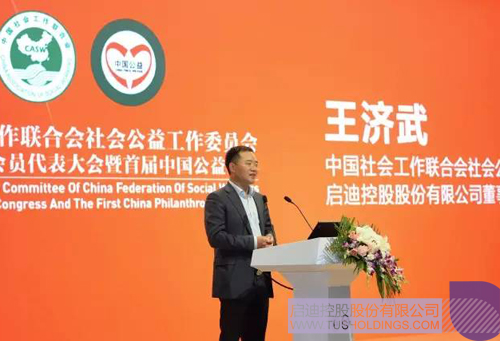 ▲ 九游电子娱乐_九游体育(中国)控股董事长、新任中国公益委员会主任王济武讲话