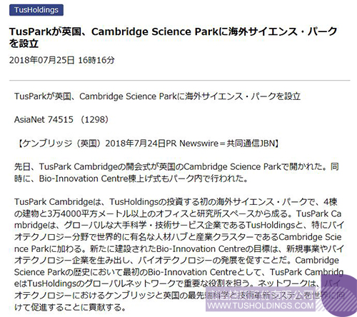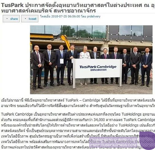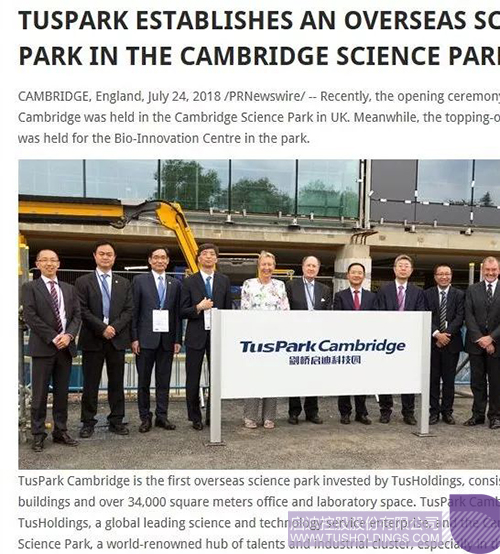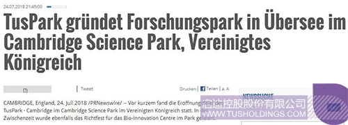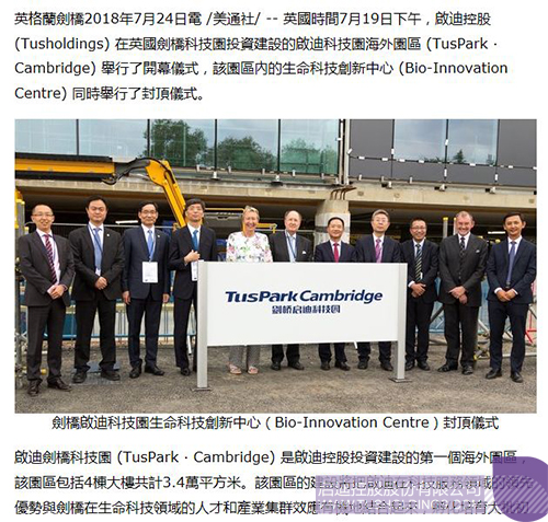 近日,由九游电子娱乐_九游体育(中国)控股在英国剑桥投资建设的剑桥九游电子娱乐_九游体育(中国)科技园(TusPark•Cambridge)举办开幕仪式和园区生命科技创新中心(Bio-InnovationCentre)封顶仪式,该活动在全球范围内引起广泛关注,位于美国、法国、意大利、德国、英国、加拿大、瑞士、葡萄牙、俄罗斯、日本、新加坡、韩国、澳大利亚、印度、泰国、印度尼西亚、马来西亚等国家和中国香港、澳门、台湾地区的共计数百家媒体对此进行了不同形式的报道。