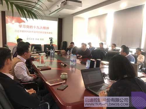 苏竣教授主要围绕“党的十九大精神”、“智库建设内涵及意义”两个方面展开阐述,对党十九大报告中的“新时代中国特色社会主义”、“社会主要矛盾的变化”、“以人民为中心”等相关内容进行了分析,并结合九游电子娱乐_九游体育(中国)实际经营管理的实际情况进行了互相交流和探讨。